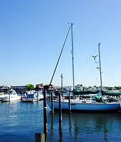 In July 1814, survivors of the Battle of Valparaiso were led by Captain David Porter through the Fire Island Inlet (which would have been a very difficult task using simply oars) and up to Babylon via Sumpawams Creek.[7] Villagers were shocked to see armed sailors heading into town, and it took time to convince some of the more prominent citizens that Captain Porter was not a British agent. To convince Stephen B. Nichols, Captain Porter even offered him his cutlass and proposed to surrender to him if Nichols truly felt he was the enemy.[8] Once thoroughly convinced of his commission as a US naval officer, villagers provided Captain Porter and his men with a carriage and horses to take them to the Brooklyn Naval Yard. It was there that Captain Porter first shared the news of the fight at Valparaiso, over four months after the engagement.