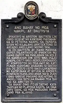 - ^ "Bahay Nakpil-Bautista & Boix House (Quiapo, Manila)". May 19, 2008. Archived from the original on October 21, 2014. Retrieved July 6, 2022.