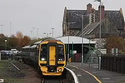 The station building contains the ticket office, toilets, café and a cycle hire office.[16][12] The platform is long enough for an 11-coach train. There is just a single track in use (the second platform is derelict) but there is a siding with a loop line just south of the platform.[1] The ticket office is usually open every day and a ticket machine is also provided. There is both a car park and bicycle rack.[18]