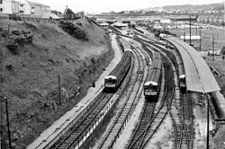 Diesel railcar depot and terminus looking towards the station in 1966.