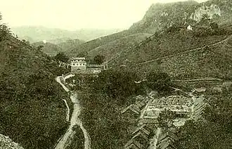 With the enemy in full retreat either towards That Ke or back into China, de Négrier ordered the two foremost companies of Diguet's battalion to remain in position astride the path to That Ke, the 111th Battalion to secure the limestone massif, and the rest of the brigade to close up on the village of Cua Ai and the Gate of China. The first units to reach the Gate of China were Brunet and Michel's companies of Schoeffer's battalion, which had left the 111th Battalion alone on the summit of the limestone massif and climbed back down to the plain. The gate itself was protected by two flanking forts and trenches had also been dug along the slopes of the neighbouring hills, but the Chinese troops occupying these defences had been brought forward during the battle to join their comrades around Đồng Đăng. When their lines broke, the French pursued them so closely that they were unable to rally in these positions. As a result, the legionnaires occupied the Gate of China and pushed on across the frontier into China without meeting any resistance. The rest of the brigade gradually came up to Cua Ai. Lascombes and de Féraudy's companies, on the hills to the east of the Mandarin Road, made their way down into the Đồng Đăng valley and reached the Gate of China shortly after Schoeffer's men. On the extreme right Schoeffer pulled in Gaucheron's company, which had served as a flankguard for most of the afternoon. Finally, Geil's Tonkinese riflemen and the 23rd Battalion followed the road. By nightfall the bulk of the 2nd Brigade was assembled at the Gate of China.[12]