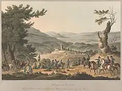 By October 1810, Marshal Massena's French army had been halted by the Lines of Torres Vedras, and the Peninsular War had reached a stalemate. Realising that a drive on to Lisbon before the onset of winter was unlikely, Masséna prepared to see out the winter months and renew the fight in the spring, despite scorched earth policies by the Allies rendering foraging for food very difficult.[2] Having survived the winter, however, Massena order a general retreat on 3 March 1811, and the British forces under Wellesley followed. By the onset of April, the French forces were just inside Portugal, aligned along the Côa river. Jean-Baptiste Drouet, Comte d'Erlon's 9th Corps defended to the north, Louis Henri Loison's 6th Corps was in the centre and Jean Reynier's 2nd Corps held the south flank at Sabugal. Resting in the rear areas was Jean-Andoche Junot's 8th Corps. It was at Sabugal that Wellesley attempted to crush the French flank by attacking forces of the isolated 2nd Corps.[2]