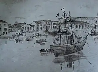 As the "Casa Fuerte" remained the last resort of the defenders right at the river, the Republicans decided to attack with heavy artillery from the hill of the Encarnación.[1]: 42  Having seen the shelling the French auxiliaries and General Vegas' Mexicans thus evacuated themselves to the ships[3] and sailed to Laguna.[5] The fleeing garrison left big amount of supplies behind among these were two pieces of 68-pound artillery, one 12-pound and 4-pounder culverins, an 8 pounder cannon and its rotating platform, three small 2-pounder pieces, 90 firearms with bayonets, 8 lances, 77 cans of shrapnel, a barrel of grenades and five horses.[1]: 44