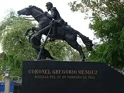 Monument in honor of the battle depicting Gregorio Méndez