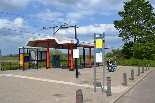 Beesd is a railway station in Beesd. Netherlands. The station opened on 1 December 1883. It lies about 2 km north of Beesd itself. The station is located on the railway line between Dordrecht and Geldermalsen (MerwedeLingelijn). The station has a small island platform, and two tracks, but only one of the tracks is actively used. Train services were operated by Arriva until 8 December 2018, when Qbuzz took over services.