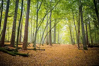 The Belavezhskaya Pushcha Biosphere Reserve spans ab area of 216,200 ha (2,162 km2; 835 sq mi) (2015), subdivided into transition, buffer, and core zones.[5] The national park occupies 150,069 ha (1,500.69 km2; 579.42 sq mi) (2015).[6] It is located 70 km (43 mi) north of Brest. The nature reserves and the national parks cover 2.7% of the Brest Region territory and 2.6% of the Grodno Region.[7]