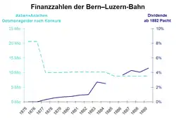 The entire share capital of the Bern-Lucerne Railway was lost when it went bankrupt in 1876, although a considerable amount of rent was paid to the canton of Bern from 1882 on.
