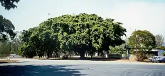 The Big Fig at Miriam Vale is thought to have been planted around the turn of the 19th and 20th centuries, local residents recalling the Fig Tree as being well established by the 1920s. Or it may have been the fig tree planted "about a chain from the main entrance of the railway station" in 1916 by the Miriam Vale Progress Association.[2] Whatever its origins, it became a focus for community activity, both social and economic, through much of the 20th century. The tree is a well-known landmark and meeting place in the town, and until 1977 served as the site for the collection of local cream and milk for rail or road transportation to Gladstone, dairying being an important economic activity in the Miriam Vale district.[1]