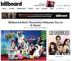 - ^ Benjamin, Jeff (January 29, 2013). "Billboard & Girls' Generation Welcome You to K-Town!". Billboard. Retrieved September 16, 2014.