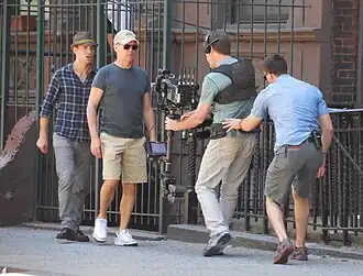 Throughout shooting, Arri Alexa cameras were used; an Alexa M was used for handheld sequences, and an Alexa XT was attached to the Steadicam. Neither used matte boxes, however. Steadicam operator Chris Haarhoff explained this decision: "We didn't want this big black thing gliding into their eyeline. This way we could get very close and get the light past the lens and onto the actor's face."[39] Lubezki – who did all the handheld camerawork[28] – had chosen the Alexa M because the camera was very small and allowed him to get into tiny spaces and close to the actors,[29] sometimes filming two inches (5 cm) away from Keaton's face.[32] The camera also allowed recording for such a long period – necessary for the long takes of the movie – that Lubezki went so far as to say the movie would have been impossible to do years before.[29] The cameras were lensed with Leica Summilux-C or Zeiss Master Primes.[39] Lubezki stated that these gave clean images, saying "You can have all these lights in the frame and they are not really causing bad flare or things like that".[29] In terms of sizes, they initially trialled a 21mm, but this did not give Iñárritu the "intimacy" he wanted. The crew instead went to an 18mm Leica, which was used for the majority of the film. Only when emphasis was needed did they switch the lens to a 14mm, but this was rare.[39]