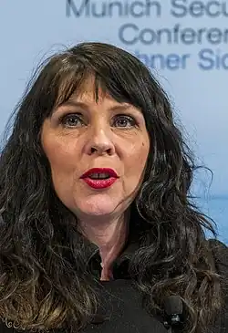 Birgitta Jónsdóttir (born 17 April 1967) is an Icelandic politician, anarchist,[1][2] poet, and activist. She was a Member of the Althing (MP) for the Southwest Constituency from 2013 to 2017, representing the Pirate Party, having been elected at the 2013 election. She was previously an MP for Reykjavík Constituency South from 2009 to 2013. In November 2017, she has announced to retire from politics "for now".[3]
