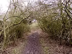 Bishop Monkton Ings is a 37.788 hectares (0.378 km2; 0.146 sq mi) biological Site of Special Scientific Interest (SSSI).[12] It lies to the south of Ripon, North Yorkshire. Access is via the muddy Ings Lane public footpath running east from Bishop Monkton village to the north-west corner of the site. The track is part of Ripon Rowel Walk.[13] There is no vehicular access, and no facilities. The watercourses Holbeck and Ings Drain run through the site, which contains deciduous woodland, "species-rich marshy grassland subject to winter flooding" and some fen alongside the two streams.[2]