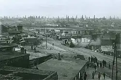 By 1874 there were 123 refineries in what would become known as "Black City".[4] The refinery district was about 8 miles (13 km) from the shipping ports.[5] An industrial area plan was completed in 1876. Some of the farms and pastures of the neighbouring village of Keshla were zoned to accommodate replacements for factories that had been dismantled in the city. The new industrial zone was 2 kilometres (1.2 mi) from residential areas. To prevent further pollution, the new zoning law prohibited oil refineries from being built within the residential area.[3] By 1880, there were 118 industrial businesses functioning in the Black City area.[3]