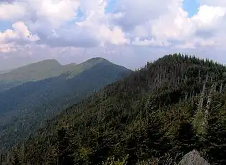 Mount Mitchell (foreground, left) and Clingmans Peak (background, right) viewed from Mount Craig