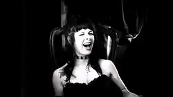 A screenshot of Napolitano singing in a chair from the alternate music video