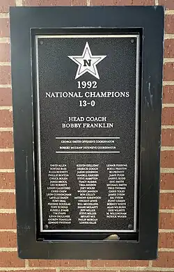 1992 NJCAA National Champions plaque at Northwest Mississippi Community College