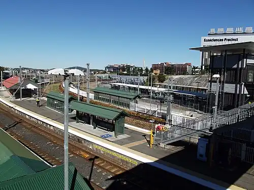 During a 10-day track closure in December 2021 and January 2022, the station was closed to allow for works to move the Up Beenleigh track 50 metres to the east following the dual gauge unwired flyover, to support the final alignment of Cross River Rail southern portal. The section of track from Dutton Park that allowed access to Platform 2 at the station was also removed, resulting in all trains from the down Beenleigh track servicing Platform 3 at the station.[11]