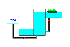Lock ponds are ponds which are maintained at an intermediate level between the upper pound and the lower pound. When a lock is emptying, water from the top of the lock fills the pond, and the rest is discharged to the lower pound. When the lock is filling, water from the pond fills the bottom of the lock, and the rest is then drawn from the top pound. By careful design of the size and level of the ponds, those at Bosley managed to re-use about 40 per cent of the water in this way. The bottom of each lock was connected by a culvert to the bottom of its pond, and a paddle controlled the flow of water through the culvert. The paddle had to be capable of sealing the culvert against flow in either direction, since when closed it had to prevent the lock from emptying when it is full, and from filling when it is empty.[15]