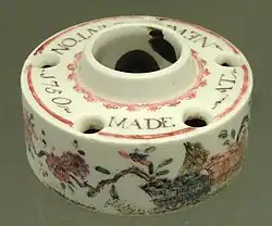 Inkwell, inscribed "Made at New Canton 1750", one of about 40 dated pieces known.[9]