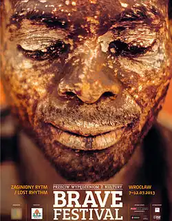 Brave Festival – Against Cultural Exile is an annual Polish music festival launched in 2005 by Song of the Goat Theatre Association.[1] It takes place in Wrocław, as well as in other cities in Lower Silesia. Since inception, artists from all over the world have been invited to present their musical/cultural traditions. The festival is intended as an opportunity for attendees to speak about where they come from, their values, their traditions and their spirituality. It aims to save and protect forgotten, abandoned and forlorn cultures.[2] Brave Festival also has a project called Brave Kids, which aims is to introduce, integrate and start a collaboration of artistic groups of children from different continents. Grzegorz Bral is the director of Brave Festival.[3]