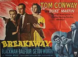 Breakaway is a 1955 British second feature ('B')[1] thriller film directed by Henry Cass and starring Tom Conway, Michael Balfour and Honor Blackman.[2][3] It was written by Norman Hudis based on a story by Manning O'Brine.[4] A private eye is hot on the tail of a stolen secret formula and a kidnapped young woman. It is a sequel to Barbados Quest (1955).