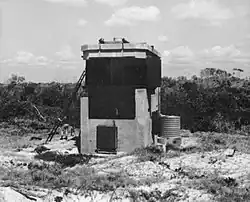 A fortified observation post on Bribie Island in 1943. The post was subsequently camouflaged.[2]