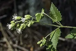 Brickelliastrum fendleri has simple leaves that are usually oppositely arranged.[5] Its deltoid or triangular-ovate leaves have crenate-serrate to serrate margins, and truncate to cordate bases.[3][7] It is fibrous-rooted and has woody caudices.[5][7]