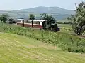 Replica locomotives running passenger trains on the original trackbed of the Laxey mines railway |