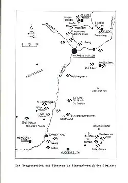 - ^ Heimatbeilage zum Oberfränkischen Schulanzeiger No. 309 dated November 2003: Gustav Schmidt: Einstiger Erzbergbau und entsprechende Verhüttung in Nordost- und Ostoberfranken on page 34 in the illustration: “Das Bergbaugebiet auf Eisenerz im Einzugsbereich der Steinach“