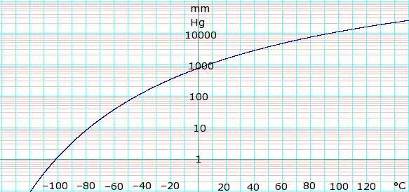 | T in °C | –101.5 | –77.8 | –59.1 | –44.2 | –16.3 | –0.5 | 18.8 | 50.0 | 79.5 | 116.0 | — | — | |