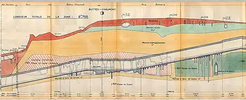 Cross section of the tunnels around Buttes Chaumont and its nearby quarries