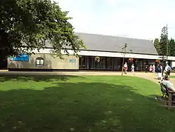 The Pavilion Gardens originally provided leisure facilities for tennis, croquet, boating on the largest lake and roller skating, as well as curling and ice skating in winter (on an ice rink where the car park is now). Tennis tournaments were played in the Pavilion Gardens from 1884 until the 1950s, including the All-England Ladies Doubles Championship and with a covered stand for spectators.[6][9]