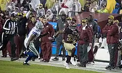 Byron Philip Jones (born September 26, 1992) is an American former professional football player who was a cornerback in the National Football League (NFL). He played college football for the UConn Huskies, and was selected by the Dallas Cowboys in the first round of the 2015 NFL draft after a stellar combine performance. He holds the unofficial world record for the standing long jump at 12 feet 3 inches (3.73 meters).[1] He played five seasons for the Cowboys, where he was once named Second-team All-Pro and made the Pro Bowl. A free agent after his fifth season, Jones signed a five-year, $82 million contract with the Miami Dolphins, making him the highest-paid cornerback in the NFL at the time.