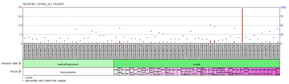 21. ^ "C6orf201 Small cell lung cancers - Homo sapiens". National Center for Biotechnology Information Search database. Retrieved 9 May 2015.