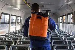On 5 March 2020, Minister of Health Zweli Mkhize had confirmed the spread of the virus to South Africa, with the first known patient being a male citizen who tested positive upon his return from Italy.[4] On 15 March 2020, the President of South Africa, Cyril Ramaphosa, declared a national state of disaster,[5] and announced measures such as immediate travel restrictions and the closure of schools from 18 March.[6] On 17 March, the National Coronavirus Command Council was established,[7] "to lead the nation's plan to contain the spread and mitigate the negative impact of the coronavirus".[7][8] On 23 March, a national lockdown was announced, starting on 27 March 2020.[9] The first local death from the disease was reported on 27 March 2020.[10] On 21 April, a 500 billion rand stimulus was announced in response to the pandemic.[11] Ramaphosa announced that from 1 May 2020, a gradual and phased easing of the lockdown restrictions would begin, lowering the national alert level to 4.[12] From 1 June, the national restrictions were lowered to level 3.[13][14] The restrictions were lowered to alert level 2 on 17 August 2020.[15] From 21 September 2020, restrictions were lowered to alert level 1.[16]