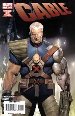 In 2008, Marvel Comics released Cable vol. 2, a new ongoing series by Duane Swierczynski and artist Ariel Olivetti.[2] This new series directly follows the events of "Messiah Complex". The series features Cable, and the messianic child's time traveling adventures. The dangers of the future and pursuit by Bishop are balanced with the humor of "Cable the soldier" becoming "Cable the Nanny."[3]