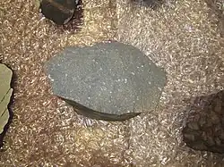 A calcium–aluminium-rich inclusion or Ca–Al-rich inclusion (CAI) is a submillimeter- to centimeter-sized light-colored calcium- and aluminium-rich inclusion found in carbonaceous chondrite meteorites. The first high-precision radiometric datings of CAIs involved four samples examined through the Pb–Pb chronometer, yielding a weighted mean age of 4567.30 ± 0.16 Ma.[1][2] Subsequent studies including additional samples suggest a slightly older age of 4568.3 ± 0.7 Ma to rectify inconsistencies regarding Hf–W and Al–Mg chronometry methods.[3][4] As CAIs are the oldest dated solids, this age is commonly used to define the age of the Solar System.
