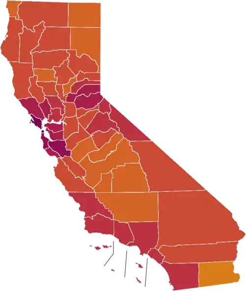 Marin County had by far the highest per capita income during that period ($58,004); its per capita income was almost $10,000 higher than San Francisco County, which ranked second in that regard. Of the ten counties in California with the highest per capita income, all but Orange were in Northern California, and all but three are located in the San Francisco Bay Area. Of the three not located there, two are smaller counties located in the Sacramento metropolitan area. Orange County's per capita income ranks last among these ten, and its per capita income is about $5,000 more than that of the state.