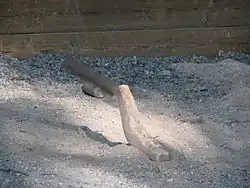 The object is to knock down a piece of wood which is supported on one of its sides. The player, from 14.5 metres, must hit this calva with his marro, a metal cylinder. The player has 25 throws to achieve this, with two practice throws.