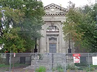 The Camden Free Public Library Main Building is the first former main library of the Camden, New Jersey public library system. Designed by Herbert D. Hale and Henry G. Morse,[4] the building was constructed with a grant from the Carnegie Corporation and opened in 1905.[5][6] It closed in 1986 with the relocation of the library's main branch to the former South Jersey Gas, Electric and Traction Company Office Building. In 1992, the building was placed on the state[3] and national[1] registers of historic places. The building has fallen into state of serious disrepair.[7] In 2003, funding was found for its stabilization, with the hope that it would be preserved and re-used.[4][8]