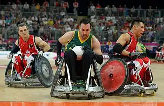 He first competed in wheelchair rugby in 2003 and was selected for Australia in 2005.[4][5] He won a silver medal at the 2008 Beijing Paralympics and a gold medal at the 2012 London Paralympics.[6] He was a member of the Steelers team that won silver medal at the 2010 World Wheelchair Rugby Championships in Vancouver and a gold medal at the 2014 World Championships in Odense,[7] and the team that retained its gold medal at the 2016 Rio Paralympics after defeating the United States 59–58 in the final.[8]