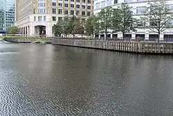 Most of the grade II listed buildings in Canary Wharf sit to the north-west of West India Dock North, and are located within the West India Dock conservation area.[61] In addition to architectural values, "these buildings and structures are of significance due to their association with the development of the docks and the community that grew up around them".[62]