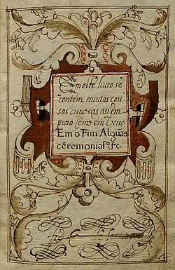Inside the songbook, an inscription reads Porto, dia de S. Miguel, 603. (Porto, St. Michael's Day,i.e., 29 September 1603). In spite of that, the music therein is considerably older, being dated as belonging to the period between 1560-1580. This songbook contains the only Portuguese manuscript madrigals known to date, besides vilancetes, cantigas and two rare examples of sacred villancicos, one for Christmas (Pues a Dios humano vemos) and the other for the feast of Corpus Christi (O manjar bivo, dulçe i provechoso).