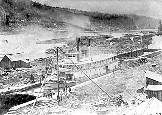 Canemah was an important place in the 1850s, and many more stores and residences were built, as well as nine or ten steamboats in addition to Multnomah and Canemah. During this period, on April 8, 1854, the spectacular and tragic explosion of the new steamboat Gazelle occurred. Other steamboats built at Canemah in the 1850s included Yamhill (1851), Shoalwater (1852) (later known by other names), Wallamet (1853), Enterprise (1855), James Clinton (1856), Elk, Surprise (1857), Onward and Moose.[3][5]