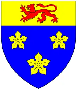 Due to the foreclosure of a mortgage, Canonteign passed to the Helyar family, which lived for some time there. The Helyar family of Canonteign traces its ancestry back to Rev. William Helyar (1559–1645) Doctor of Divinity, Archdeacon of Barnstaple, Devon, and a chaplain to Queen Elizabeth I, who purchased the manor of Coker and obtained a grant of arms from the herald William Camden in 1607: Azure, a cross flory argent between four mullets pierced or.[31] An earlier member of this family was Richard Helyar (died 1446), Archdeacon of Cornwall in 1442 and Archdeacon of Barnstaple in 1445, who was buried in the North Choir aisle of Exeter Cathedral.[31]