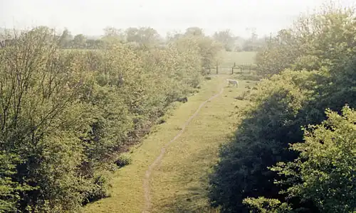 The trackbed has been concreted over to provide an access road to the sand extraction sites in the area.[10]