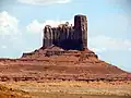 Castle Rock is situated four miles (6.4 km) north-northeast of the Monument Valley Tribal Park Visitor Center, on Navajo Nation land. It is an iconic landform of Monument Valley and can be seen from Highway 163. Precipitation runoff from this landform's slopes drains into the San Juan River drainage basin.[3] Topographic relief is significant as the summit rises 800 feet (244 meters) above the surrounding terrain in 0.25 mile (0.4 km). This landform's toponym has been officially adopted by the United States Board on Geographic Names.[2] It is so named because the butte resembles the silhouette of a castle.[4] The first ascent of the summit was made on May 8, 1960, by Harvey T. Carter, Layton Kor, and John Auld.[5][6]
