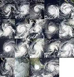 This lists all of the Category 5 hurricanes in the order in which they formed according to the central and eastern Pacific HURDAT database, which dates back to 1949. Before the advent of reliable geostationary satellite coverage in 1966, the number of eastern Pacific tropical cyclones was significantly underestimated.[9] It is therefore very possible that there are additional Category 5 hurricanes other than those listed, but they were not reported and therefore not recognized. However, the lack of Pacific Category 5 hurricanes during the late 1970s, 1980s, and early 1990s is considered certain.[8]
