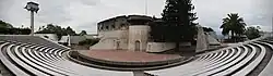 The Centro Cultural Miguel Ángel Asturias, commonly called Teatro Nacional, is a cultural center in Guatemala City, Guatemala. It is located in the Centro Cívico (Civic Center) of the city and was built in the same place of the old Fuerte de San José. Its form, which emulates a seated jaguar,[1] stands out from the adjacent buildings. The complex, which was designed by the architects Efrain Recinos and Carlos Alberto Haeussler was completed in 1978.[1]