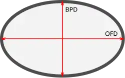 The cephalic index is also used in medicine, especially in the planning and effectiveness analysis of cranial deformity corrections.[10] The index is a useful tool in assessing the morphology of cranial deformities in clinical settings.[11] The index is used while looking at the fetal head shape, and can change in certain situations (ex. breech presentation, ruptured membranes, twin pregnancy).[12] It can be measured for prenatal infants in the womb using obstetric ultrasound, and a value of 78.3% ± 8% (±2 standard deviations) is considered normal.[13]